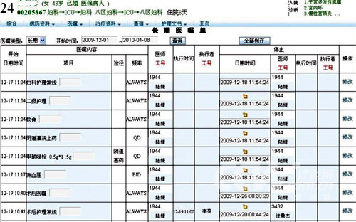 我们在应用中发现,医嘱是费用和病历的纽带,临床业务中费用的发生和医嘱有着直接的关系。一般来讲,多数HIS中已经将医嘱涵盖在其中了,但是这些医嘱基本上是为了收费而做的计算机处理,等到电子病历中长期医嘱和临时医嘱要打印出来时就会和以收费为目的的医嘱有所区别了。电子病历中要求是无纸化的应用,因此对原有HIS中的医嘱有了新的要求,需要更符合规范和临床标准的医嘱格式。