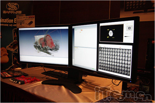 蓝宝科技使用ATI FirePro工作站绘图卡及完整10亿色彩处理和输出(每个通道10-bit) , 双屏幕的呈现, 使医疗可视化画面显示更加真实及易于辨识。