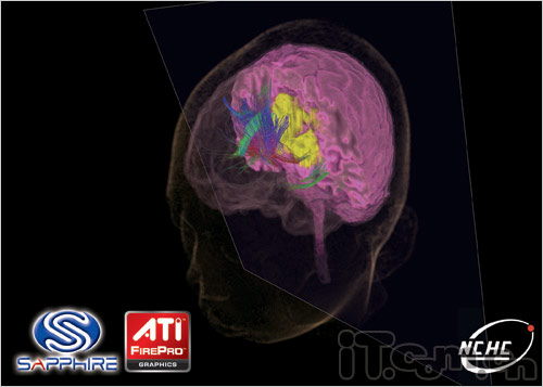 成功案例: 以下蓝宝科技于2009台北国际计算机展展出的、 该案例是与国家高速网络_视觉与互动媒体实验室的一项合作, 利用ATI FirePro专业显示卡及56吋大型医疗专用屏幕(解晰度高达3840X2160)展出了BrainViz (脑部肿瘤与脑神经)真实个案: 一位年轻女性,有头痛、注意力不集中、计算能力失常等症状,怀疑是因为肿瘤影响到脑内重要的神经束, 透过最新的图像处理技术实时重建后,可清楚的看到病人的左脑有一个肿瘤,判断可能是恶性肿瘤。并再继续观查皮质脊髓束、扣带回神经纤维束及胼胝体等来判断造成各项机能失常的主要原因。经由这样的实时影像运算技术,可以清楚让医师了解肿瘤和神经束在三度空间中的相对位置,拟定完整的手术计划,降低了手术风险、使整个过程更加顺利完成。