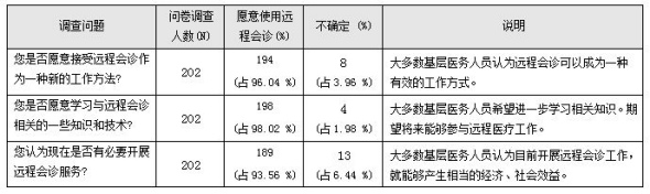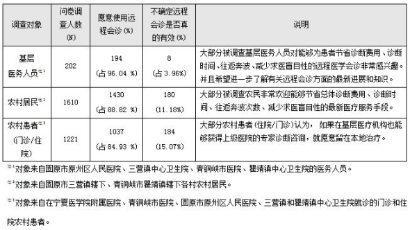 另外从基层医务人员、农民患者、一般农村居民对远程医疗的认识和接受程度调查结果看: