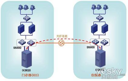 围绕这一目的,哈医大一院与HIS软件供应商专家一同进行不同厂家的方案调研筛选,最终选择了H3C提出的采用主流CDP连续数据保护技术的集中存储备份解决方案,分别在门诊部机房和住院部机房部署两台万兆IX3620存储系统,在数据中心机房内HIS系统服务器通过万兆交换机S5800与万兆存储IX3620通过IP方式进行连接,服务器通过IP网络对存储系统进行数据读写。