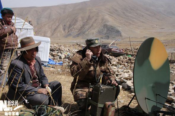 图为军医王瑞金通过远程卫星通信系统为灾去群众远程会诊。李文龙摄
