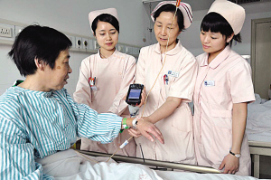 “有了这些新武器,我们不再担心怕用错药,躺在这里心里也很踏实。”昨天,锡山人民医院住院患者张阿姨第一瓶输液结束按响了床头铃,只见护士很快就来到了床边,用掌上电脑(PDA)轻轻扫描张阿姨手中的腕带和输液瓶上的条码标签,系统自动核对病人信息后,不到一分钟护士即为她更换了第二瓶补液,先进网络技术的应用让病人感觉更安全、更便捷。 自当天起,该院无线移动护士工作站与腕带标识管理系统正式上线启用,这是继婴儿防盗系统使用后的又一让患者直接受益的信息系统,它将医院信息系统扩展延伸到了病房,实现了护士的床边操作。在该院住院的患者均戴上了一只只浅绿色像“手链”一样的腕带,护士只要轻轻一按手中如“遥控”大小的掌上电脑(PDA)就知道了患者所有的信息,这就是PDA移动信息系统展现科技魅力所建立的移动护士工作站。该技术的应用不仅优化了护理工作流程,提高了工作效率,并有效预防和减少了医疗护理差错,对提升护理管理具有十分重要的意义。