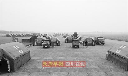 机场内,21个医疗区的帐篷在跑道上延绵几百米。