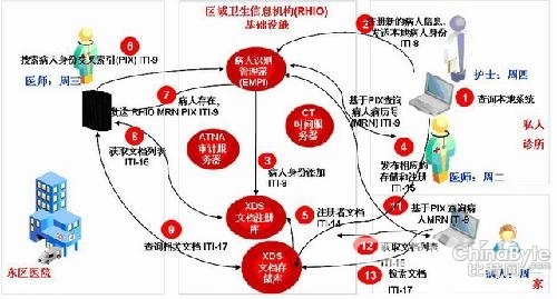 如下图所示,这是一个非常典型的病人就诊流程。周一身体一直不错,没去过医院。这天,在公司组织的年度体检中,发现血压有些高,被建议去医院复诊一下。于是,周一去了就近的社区医院。护士周四接待了他,先在本地系统查询,发现没有就诊记录,于是在系统中新建了一条病人信息,全科医师周二对他进行了初步诊断,发现社区的条件有限,无法很好的确认病情和病因,于是给病人周一开出了东区医院的转诊单。周一去了东区医院,医师周三从区域卫生信息平台中获取病人周一的电子病历和相关资料,进行了充分的检查,确认了其病因,于是更新了区域卫生信息平台中有关这次诊疗的相关信息,并给周一开了些药。周一回到家,有些信息记得不太清楚,于是通过3G手机,调阅自己这次的就诊历史。