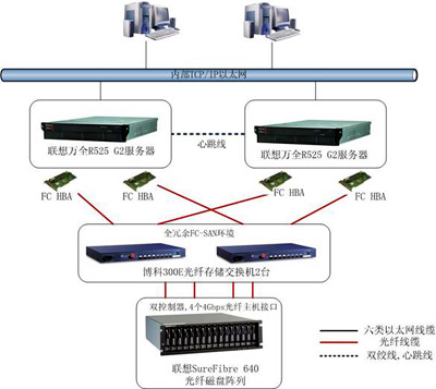 为此,联想在此项目中使用了全冗余FC-SAN环境的双机高可用解决方案。
