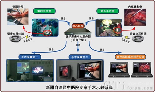 深圳锐取为其提供针对医学影像应用而设计开发的高清信号记录与远程传输系统设备,为其两个手术室的术野高清摄像机、关节镜、腹腔镜、生命体征仪等医疗影像信号的接入提供完美的解决方案,不但实现了与手术室主刀医生的远程交流,并同时实现对开放式手术特写、腹腔镜(关节镜)手术细节、手术室全景的远程观摩学习, 深圳锐取手术示教解决方案协助该项目顺利建成,并推动新疆中医医院建设一流的腹腔镜、关节镜手术示教基地,探索医学研究。