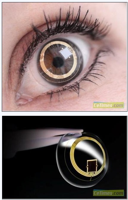 AG公司设计的一款内嵌无线MEMS传感器的隐形眼镜,利用一个嵌入式微型应变计连续在一段时间内(通常为24小时)监测眼睛的曲率,此外该隐形眼镜还内嵌天线、微型专用处理电路和向接收器发送测量数据的射频发射器。