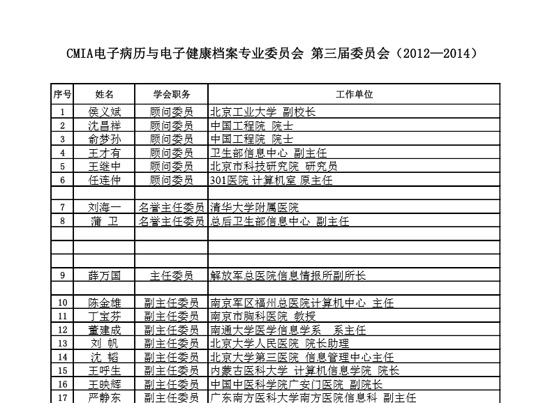 CMIA电子病历与电子健康档案专业委员会第三届委员会